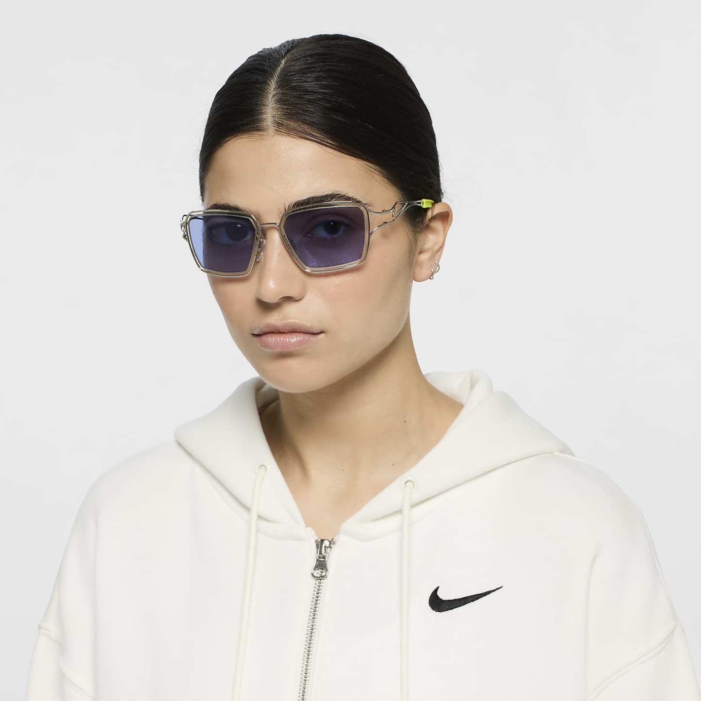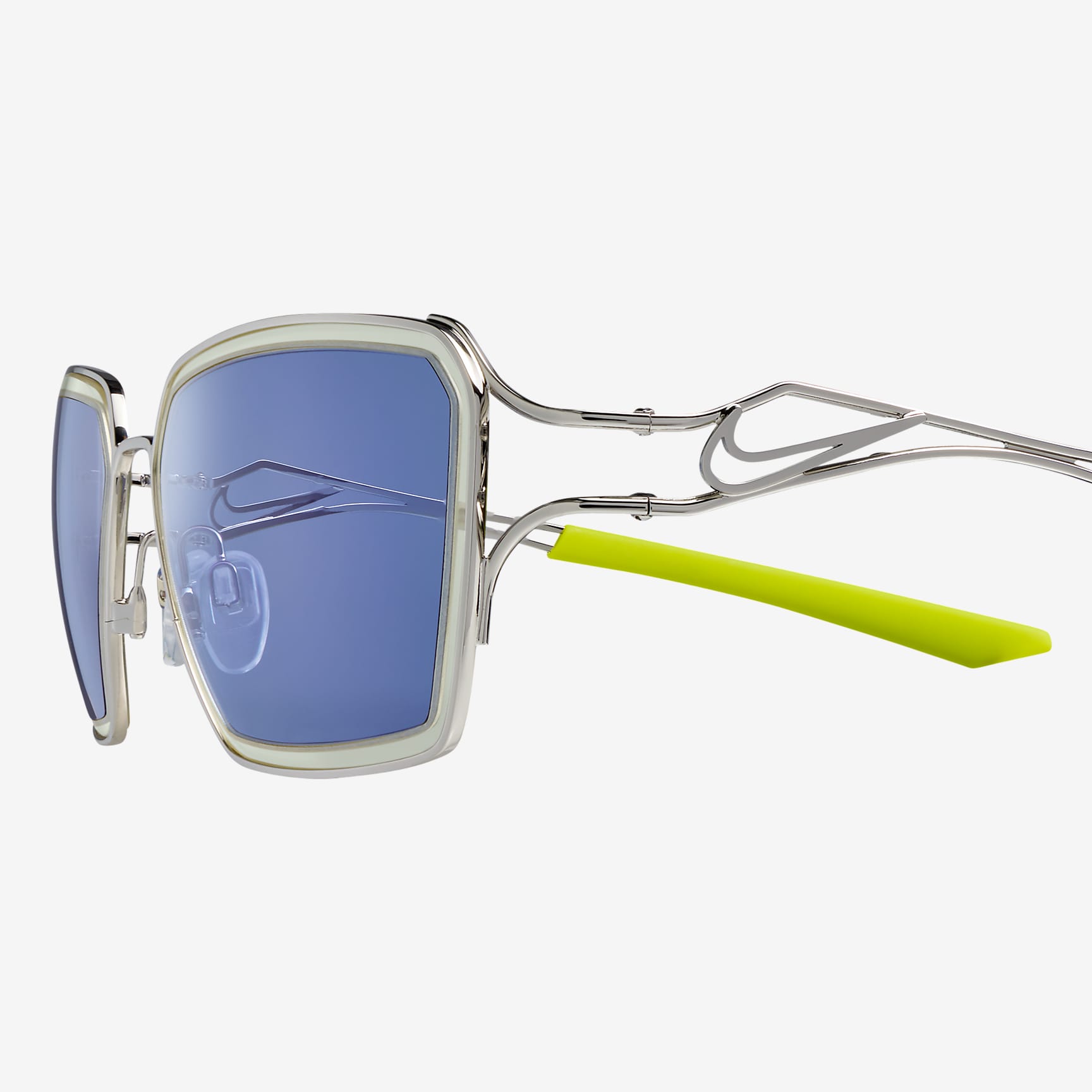 - Temple design features Nike Swoosh in metal